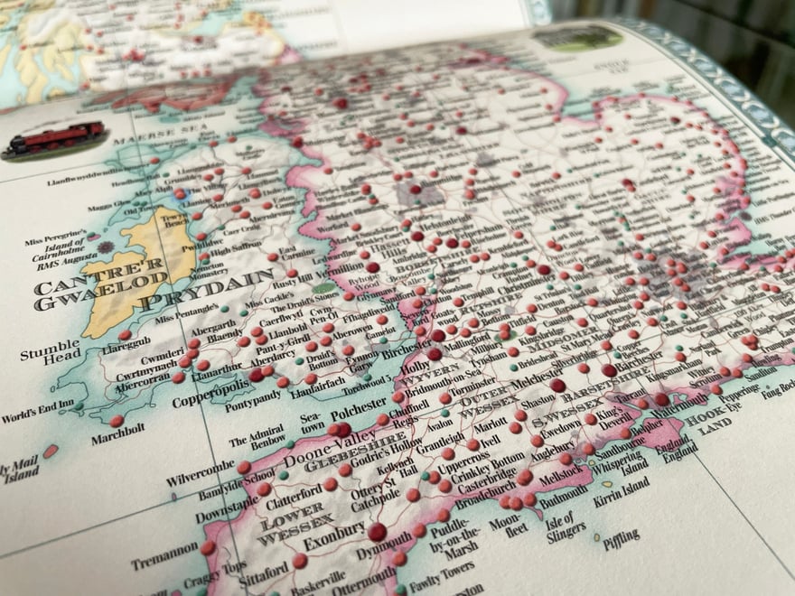 Detail from the map of Britain and Ireland in Atlas of Imagined Places, the most densely packed of all the maps in this title.