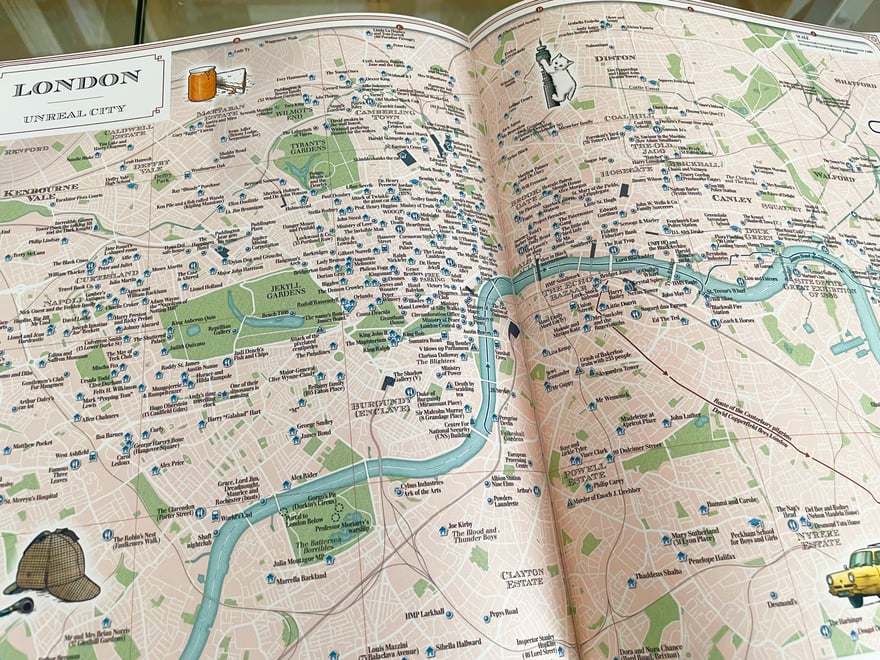 Atlas of Imagined Places (2021) and its sequel Atlas of Imagined Cities (2023), both written and researched by Matt Brown and Rhys B. Davies and published by Batsford Books, bring together thousands of fictional locations set in the real world from sources including movies, TV shows, literature, poetry, comics, myths, video games and much more. I was commissioned to create a series of eighteen detailed, period style maps for each title that plot the locations of all the places accompanied by colourful illustrations of various characters and scenes.