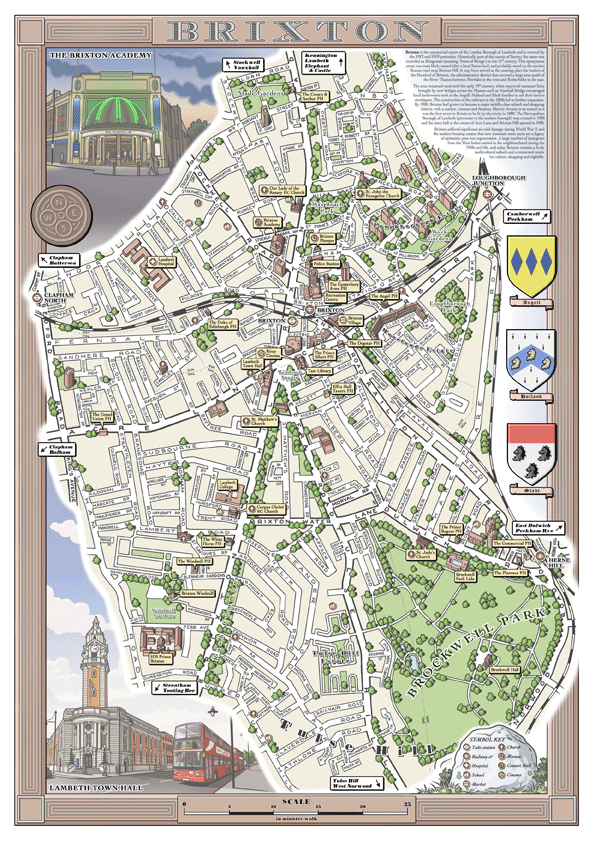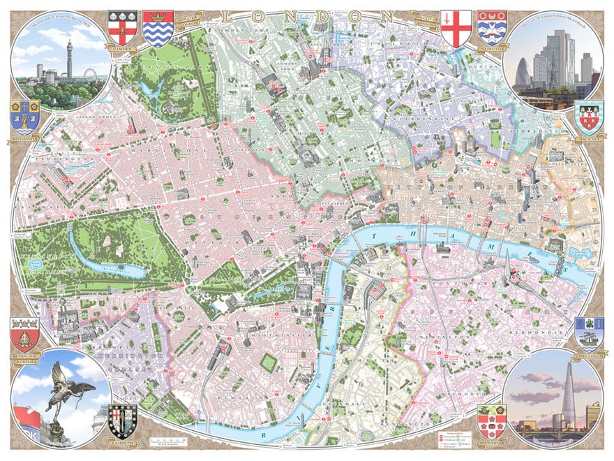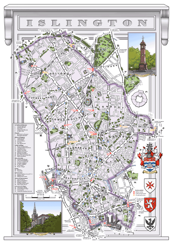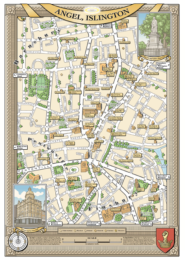 This collection of decorative illustrated maps of London neighbourhoods and boroughs took their inspiration from by antique maps. Each map took roughly 4-5 weeks to complete and were drawn