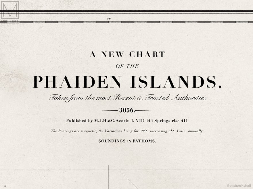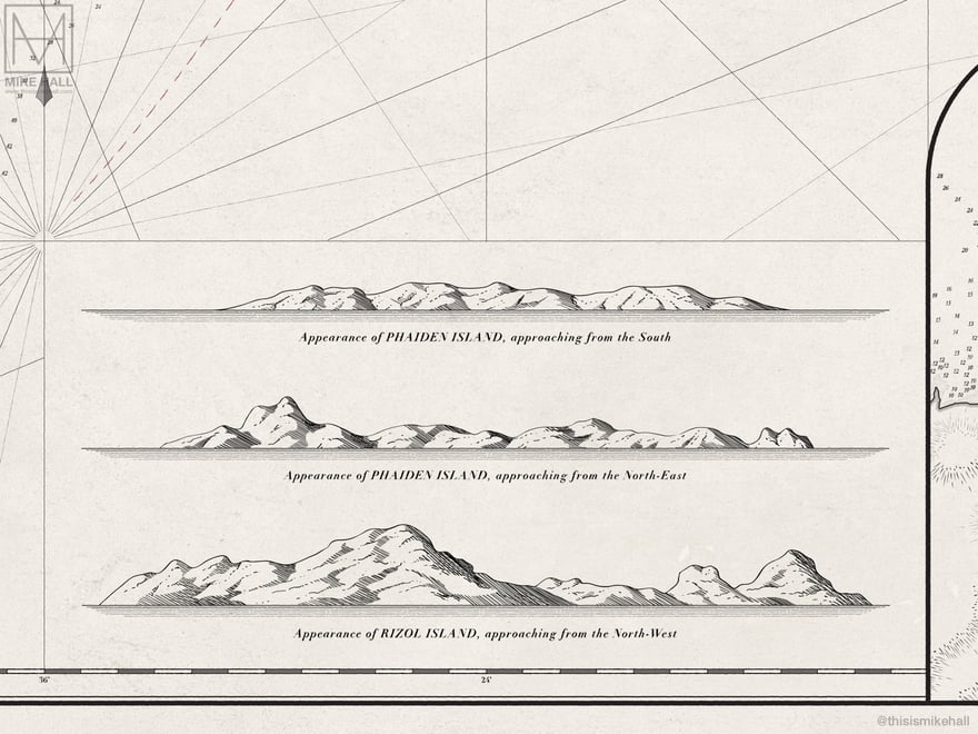 Blur Studio, the animation and visual effects company based in California, commissioned me to design a detailed, period-style nautical chart of the fictional island of Phaiden and its surrounding archipelago for a scene in their production Bad Travelling, the second episode of the third volume of Love, Death & Robots, the animated anthology series on Netflix.