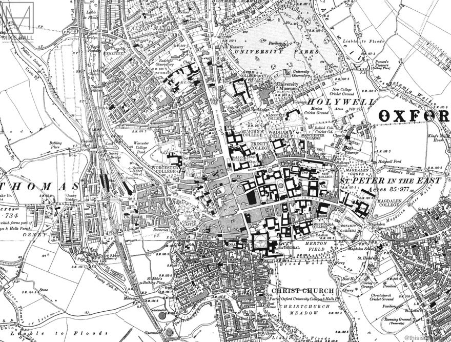 Detail from the Six-Inch Ordnance Survey map of Oxford from c.1913, which I used as reference for the period style and topographical information (source: maps.nls.uk).
