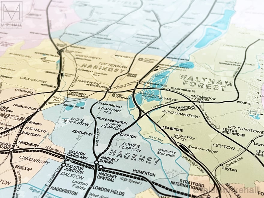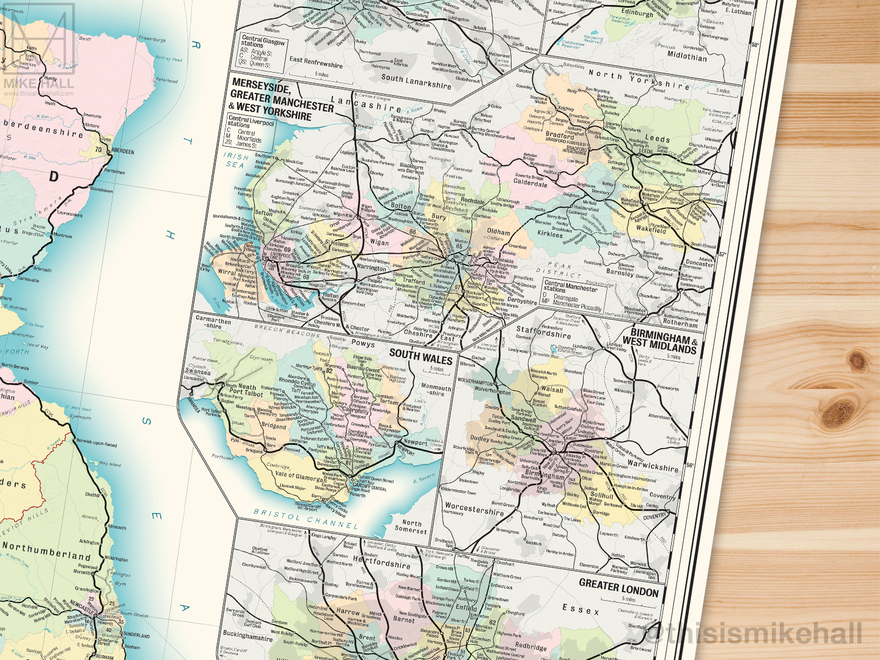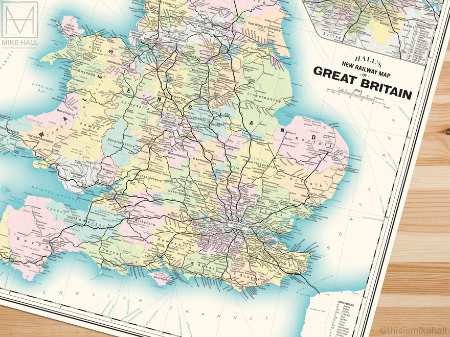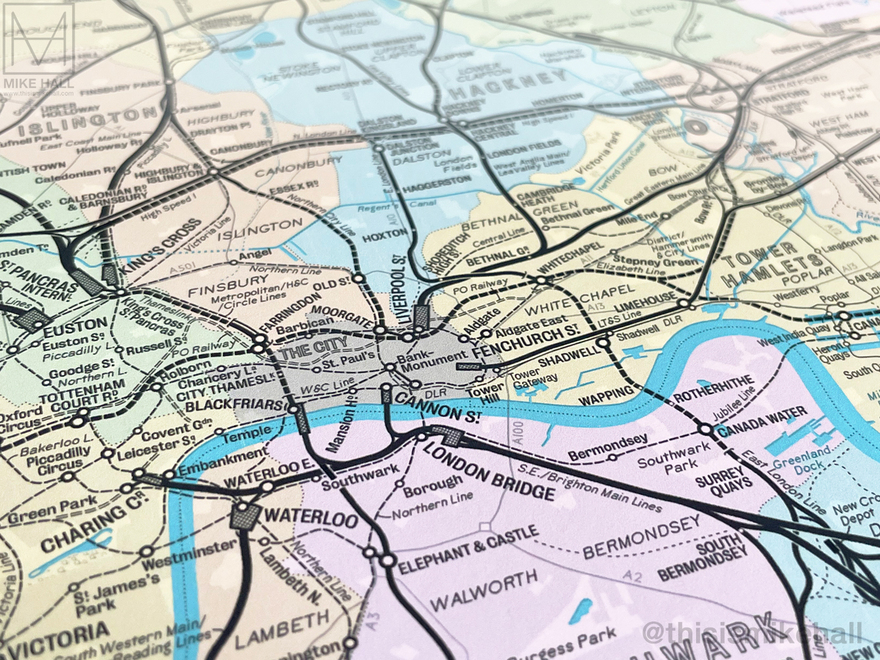 The designs are available as prints from my online store: shop.thisismikehall.com/collections/railway-maps