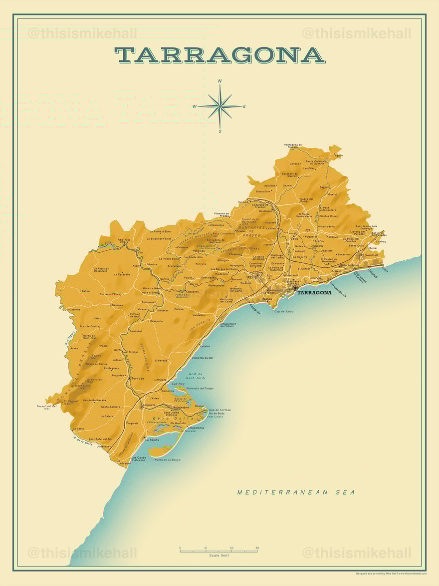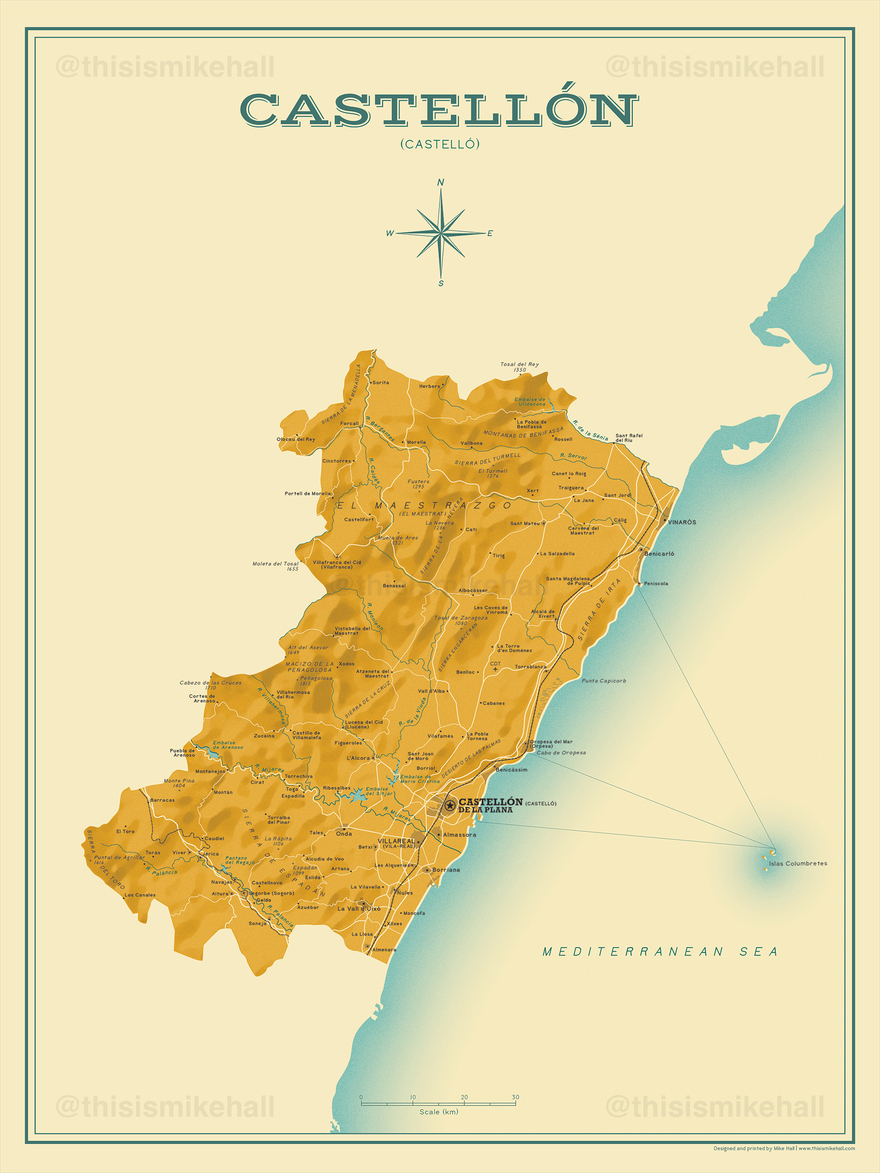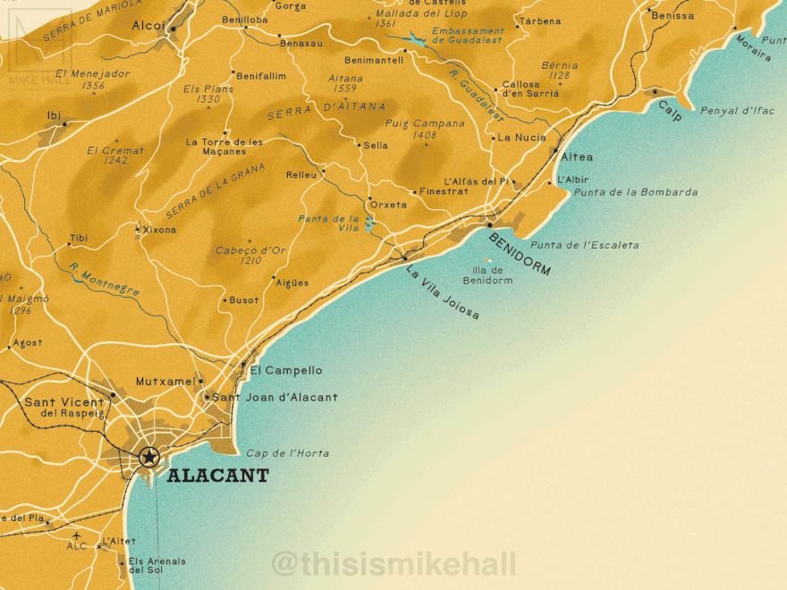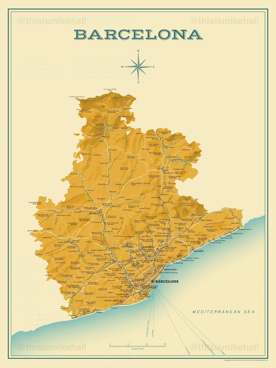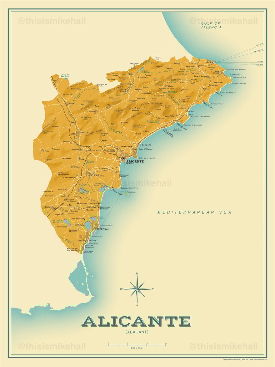 Each map has been designed in a retro, mid-century style with period-style typefaces and a minimal colour palette of bright, summery tones. Separate versions with spellings in International English (using customary exonyms), Spanish and regional languages (such as Catalan or Valencian) exist for each map.