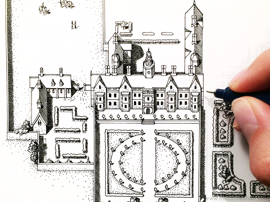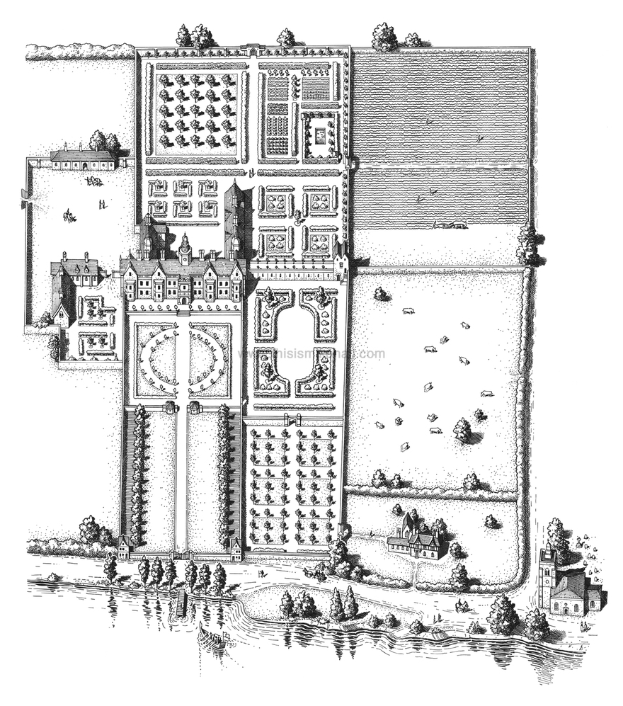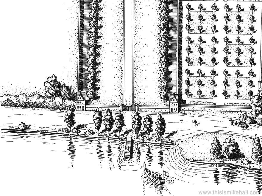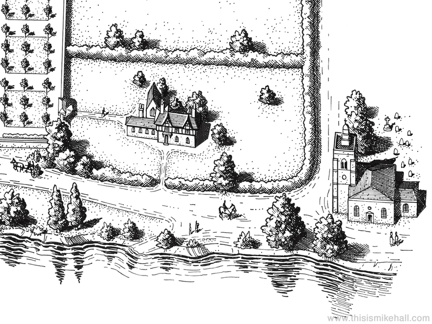 The second part of the project involved this detailed illustration of Beaufort House, Thomas More's mansion at Chelsea between 1520 and 1535, as it would have appeared in his lifetime.