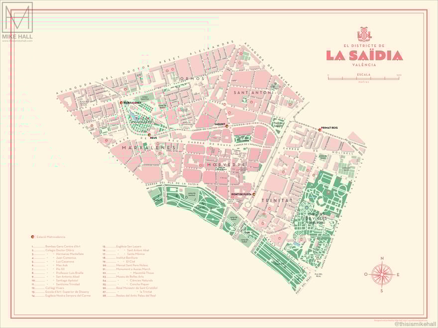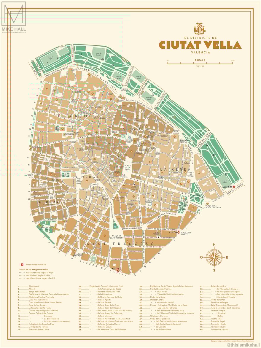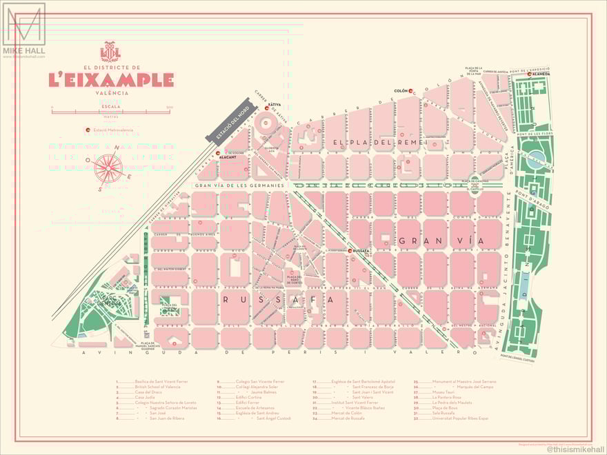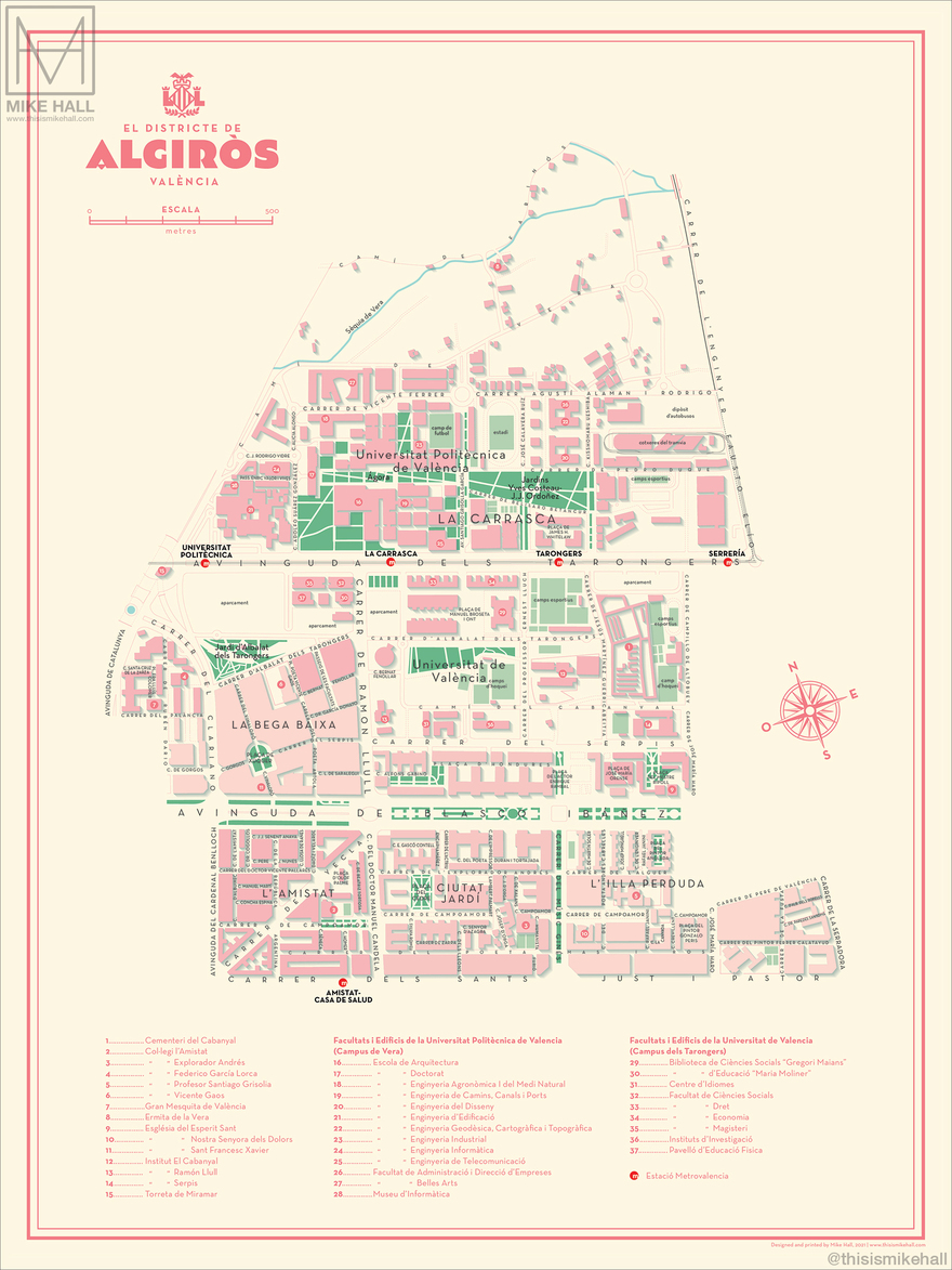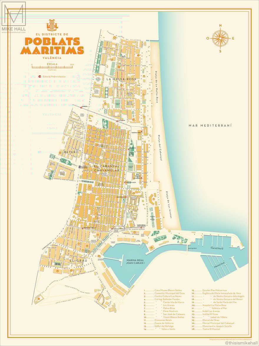 Prints of these designs are available from https://shop.thisismikehall.com/collections/distritos-de-valencia